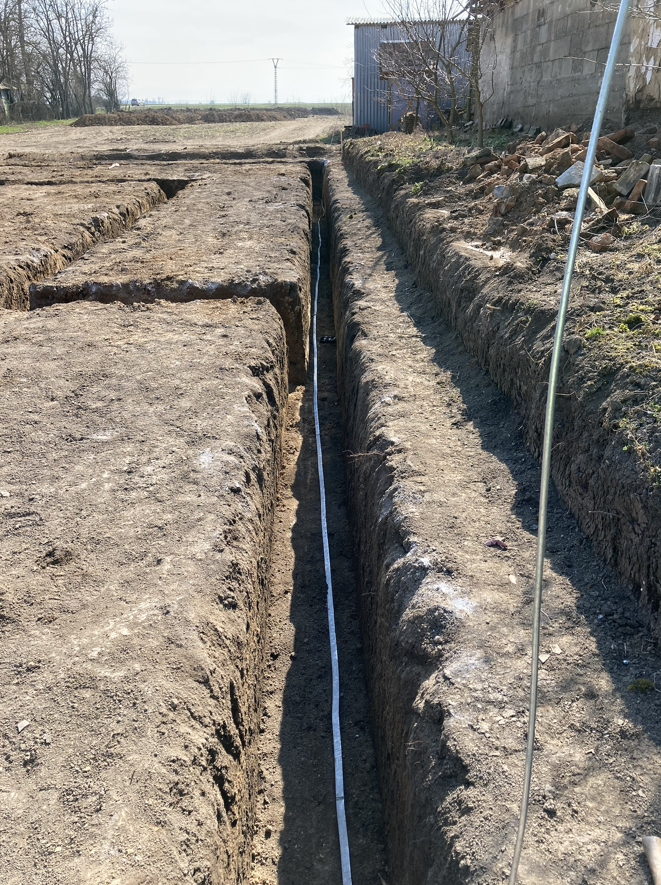 - Plynové prípojky: Napojenie na zemný plyn (pretláčanie pod komunikáciami)